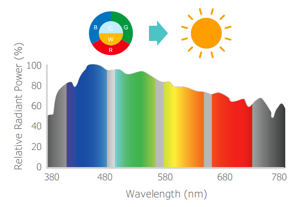透過 inHealth 室內陽光模擬技術提供對人體有益的光譜組成。