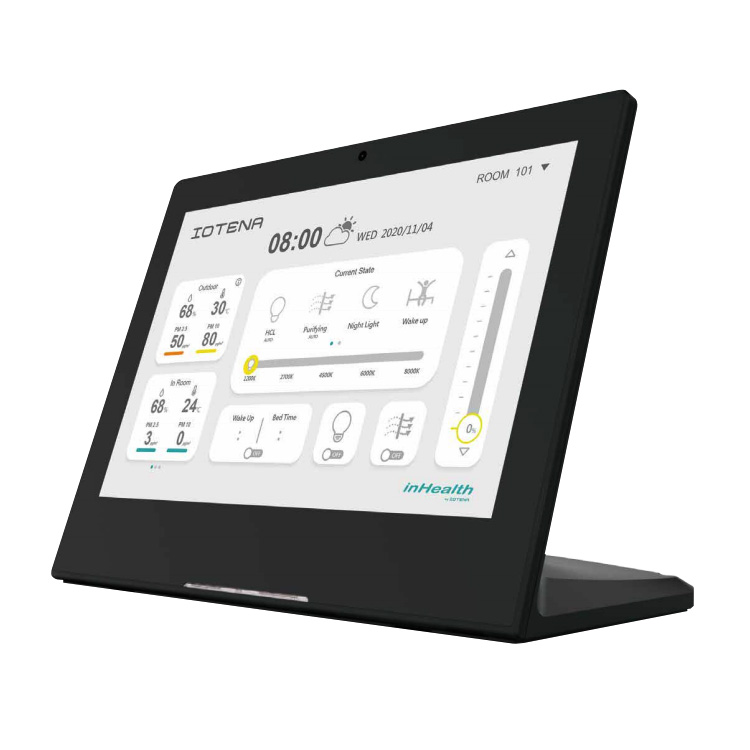 InTouch i10s offffers a well-designed user interface for controlling all the devices related to inHealth system, including air, lighting, temperature, and water. Touch screens simplify and enhance the way users to control the whole system, to monitor the status of devices, and to read the message of the system.